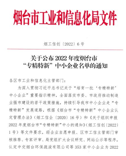 2022年4月22日,煙臺(tái)市工業(yè)和信息化局公布了2022年度煙臺(tái)市“專精特新”中小企業(yè)認(rèn)定名單,煙臺(tái)核晶陶瓷新材料有限公司憑借自身在新材料領(lǐng)域的專業(yè)化技術(shù)支持、高品質(zhì)特色化的產(chǎn)品服務(wù)、雄厚的自主研發(fā)和創(chuàng)新能力、精細(xì)化的管理水平從眾多企業(yè)中脫穎而出,被認(rèn)定為煙臺(tái)市“專精特新”中小企業(yè)稱號(hào)。
